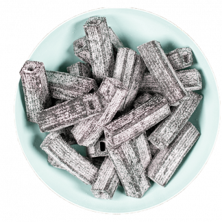 | Ingredienser | HVEDEMEL, sukker, glukose-fruktosesirup, ammoniumklorid (=salmiak) 6, 3%, lakridsekstrakt, salt, farvestof (E153), aromaer. |