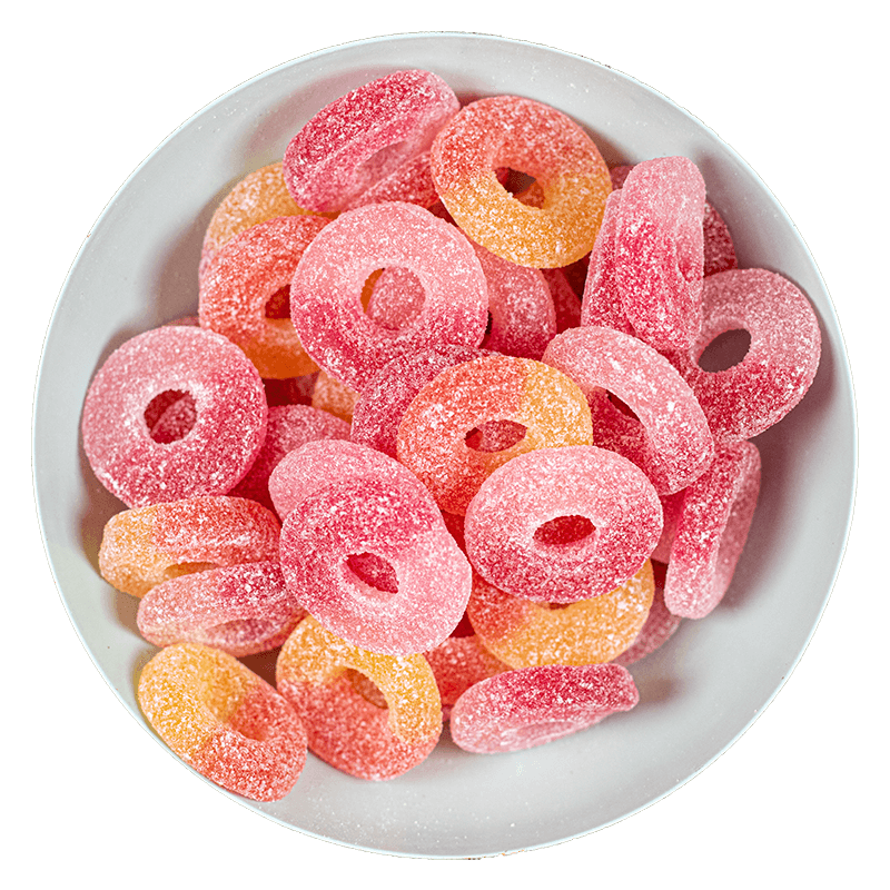 | Ingredienser | Sukker; glucosesirup; majsstivelse; fugtighedsbevarende middel: sorbitolsirup; HVEDEMEL; syrer: citronsyre, æblesyre; overfladebehandlingsmiddel: carnaubavoks; aroma; karamelliseret sukker. |